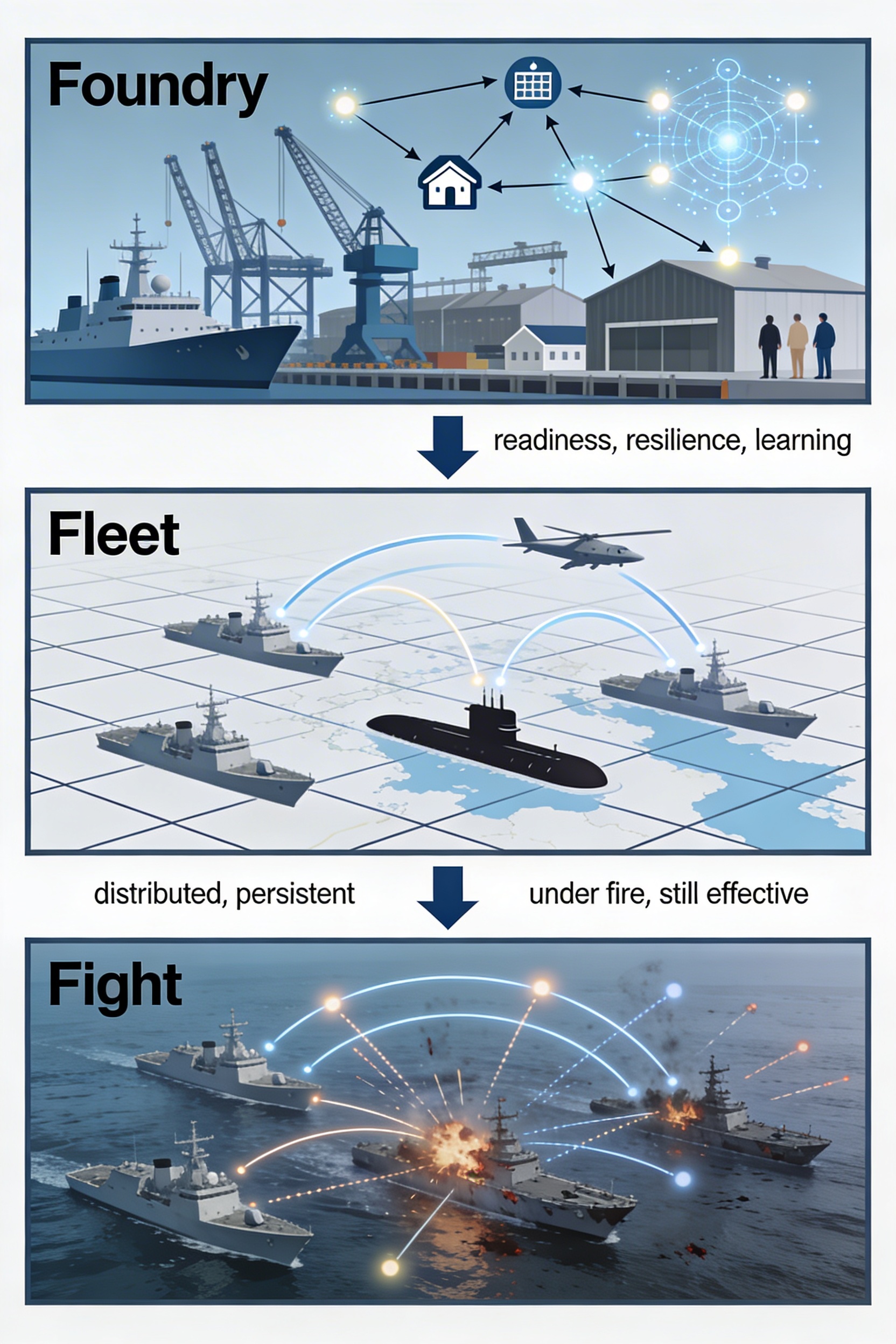 In Caudle’s formulation, we are to view “everything we do through an operational lens focused on the Foundry, the Fleet and the way we Fight.” The Foundry is not simply the industrial backdrop to operations. It is a warfighting system in its own right. Its output is not just overhauled hulls and repaired components, but the readiness, resilience, and learning that enable a distributed Fleet to persist under fire.